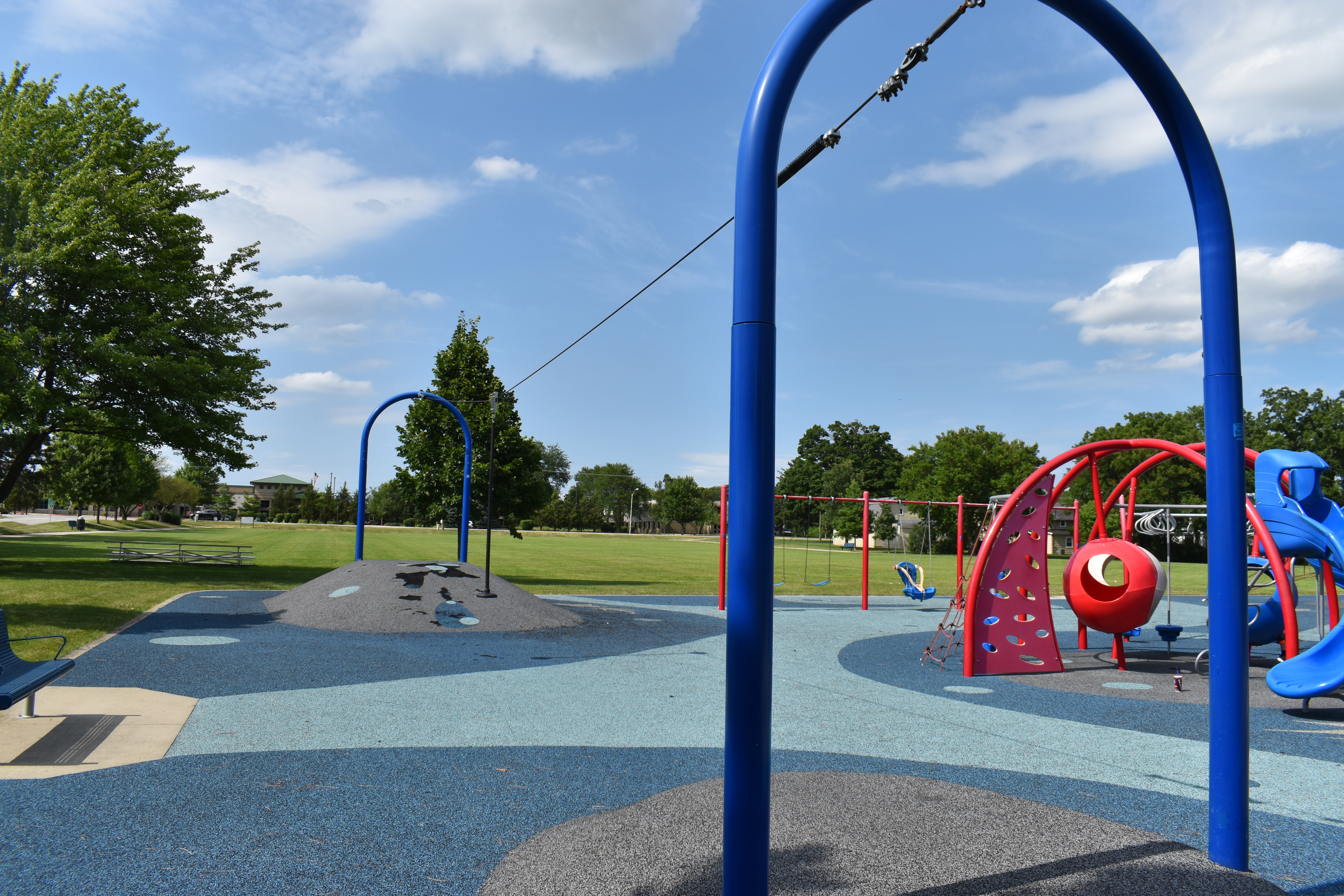 Engstrom Park is home to a large park that has something to accommodate all ages and abilities. The park features a zipline, swings, a climbing structure and slides.