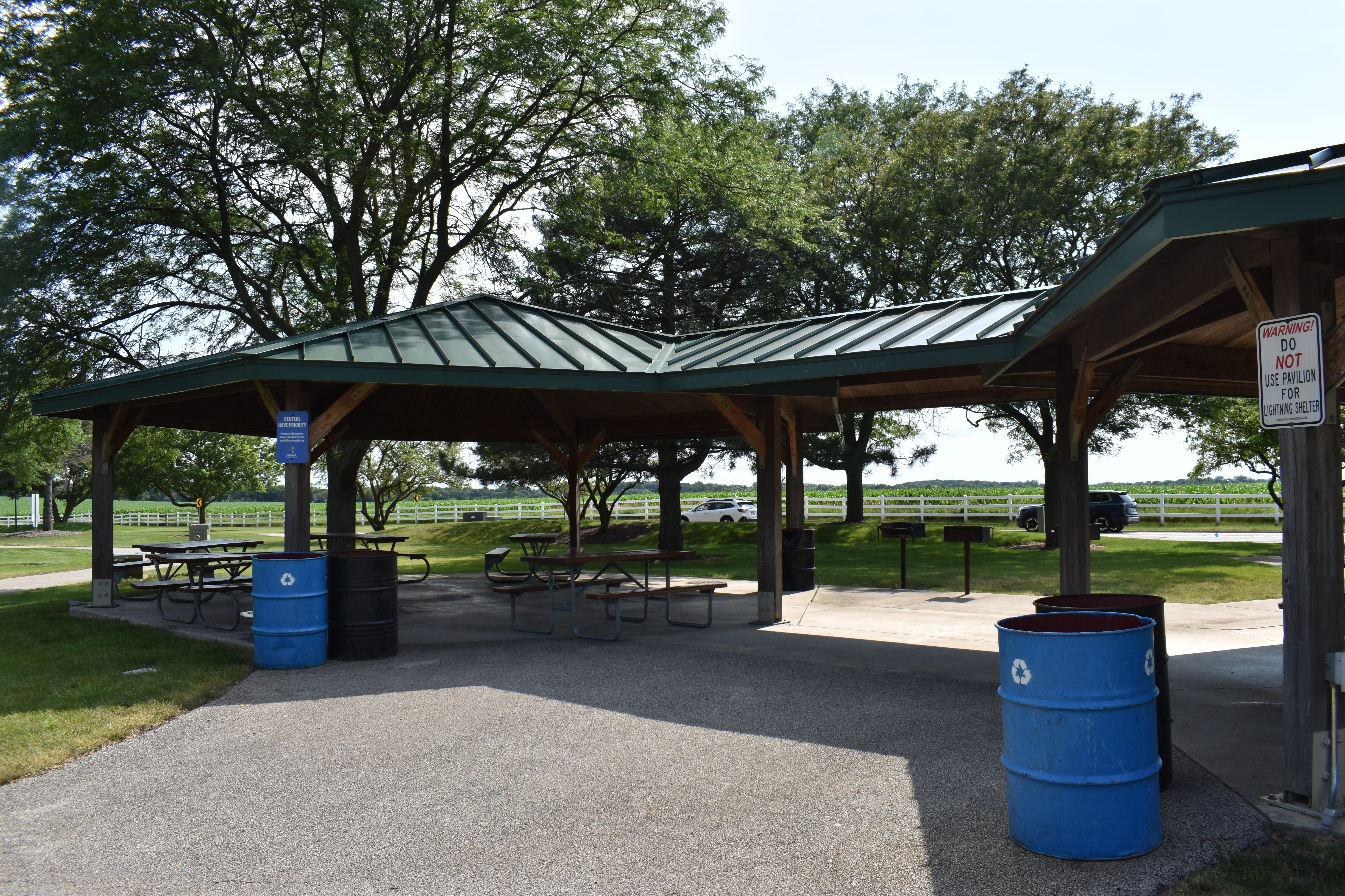 Yes, there is a shelter at Engstrom Park. This shelter has grills, electricity and water available. To rent this shelter call the district office at 630-879-5235.